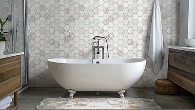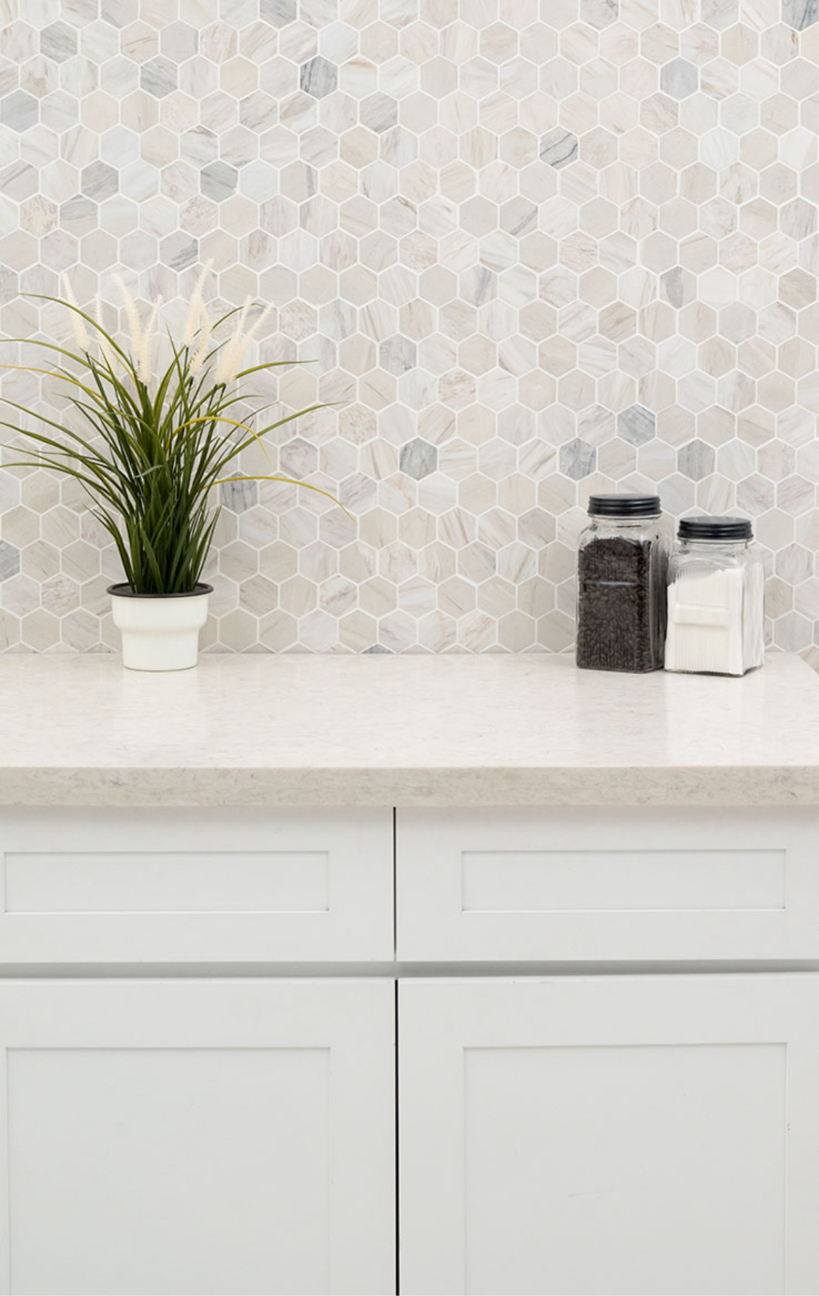 WHITE MARBLE 4" HEX POL MOSAIC LAG