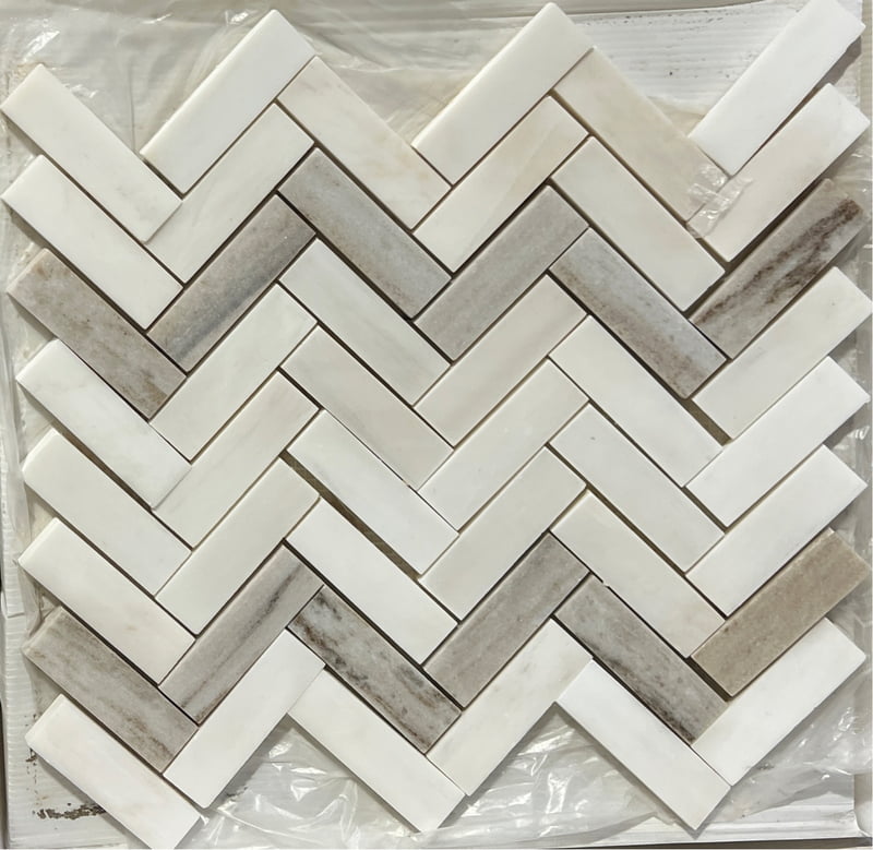 BIANCO DOLOMITE and PALISANDRO HERRINGBONE 1X3 MOSAIC, POLISHED