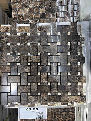 Dark Emperador Mosaic BasketWeave Marfil 1"x2" Polished