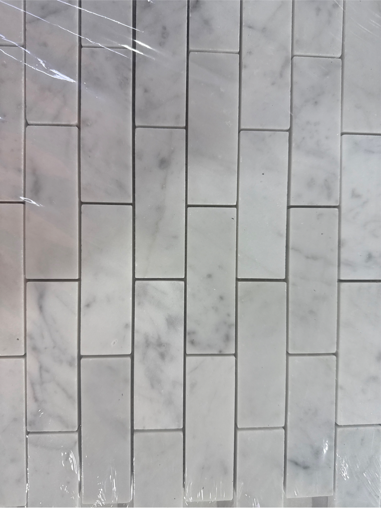 BIANCO CARRARA MARBLE MOSAIC POLISHED BRICK 1x3 OTT