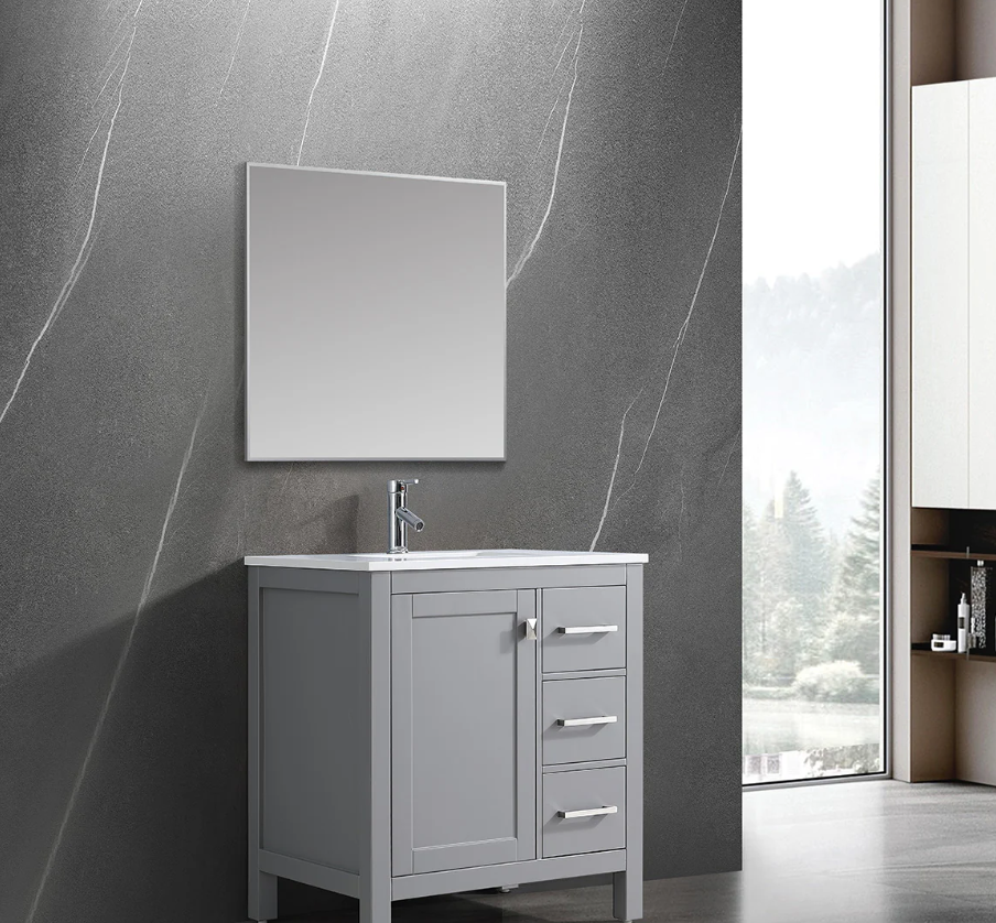 Solid Wood Vanity 30in with Top - Gray