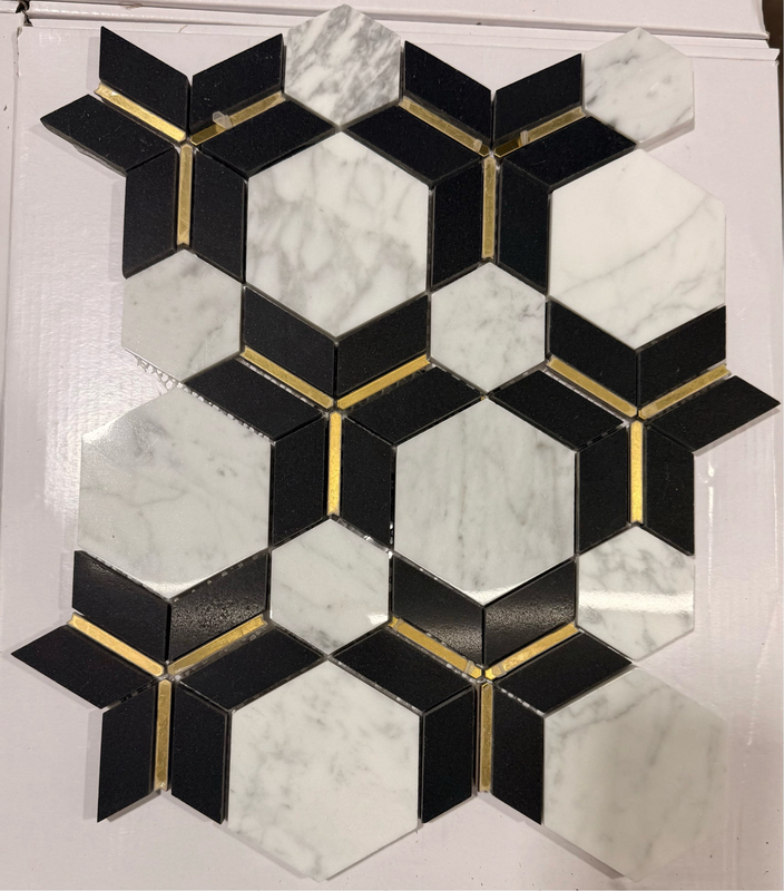 23MK-PKHXMIX-BLK NATURE STONE HEXAGON WITH BRASS WSG