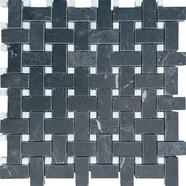 GRAPHITE MARBLE MOSAIC POLISHED BASKET WEAVE WITH WHITE DOTS 1x2 OTT