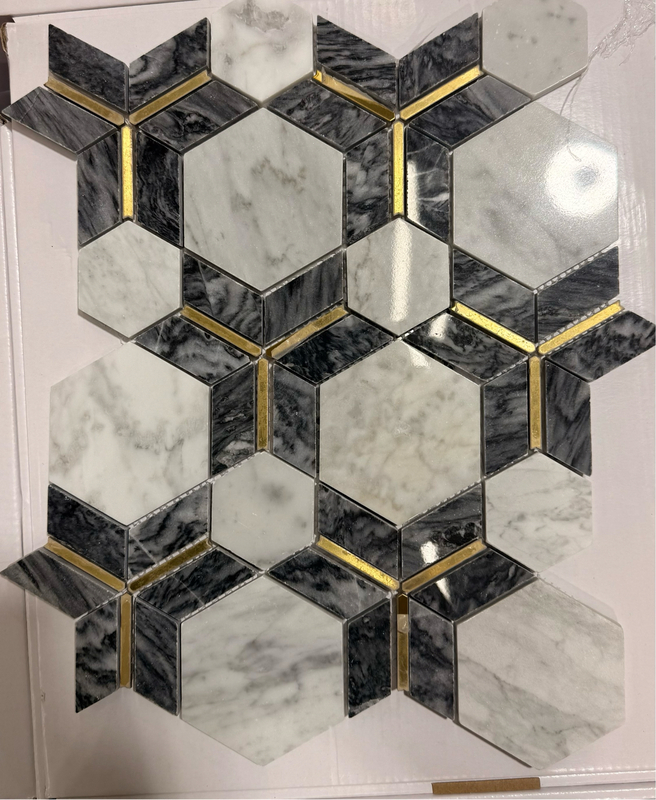 23MK-PKHXMIX-GR NATURE STONE HEXAGON WITH BRASS WSG