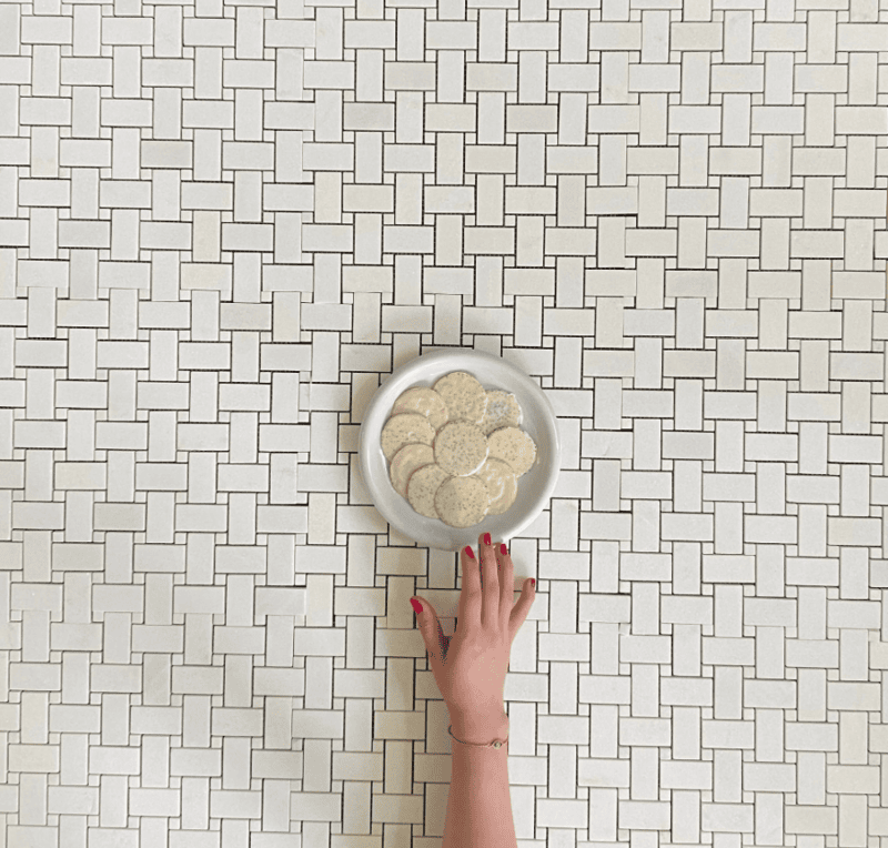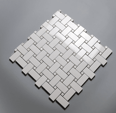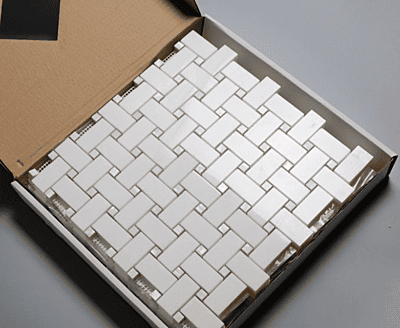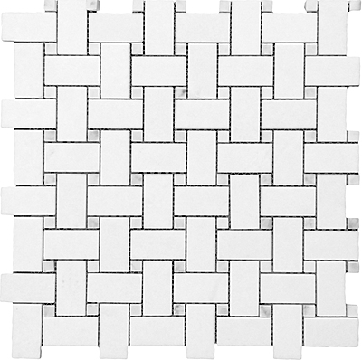 USA THASSOS WHITE BASKETWEAVE MOSAIC W/ CARRARA DOT 1X2 POLISHED