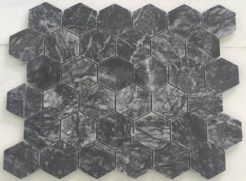 BLACK MARBLE 2" HEX POL MOSAIC LAG