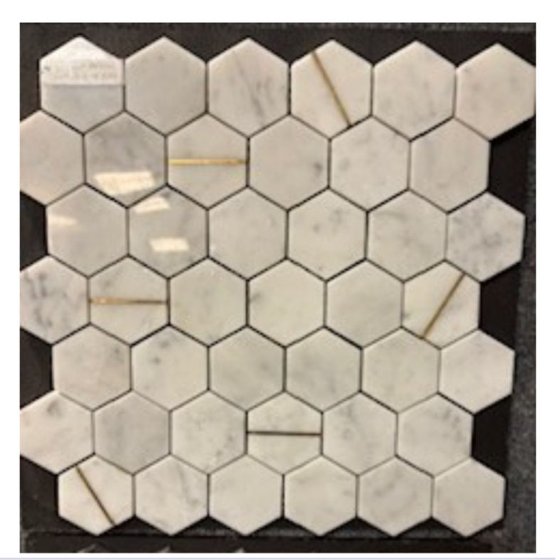 BSHX48-WHT ROSE MOSAICS CARRARA WITH GOLD 2" HEX WSG