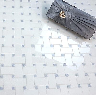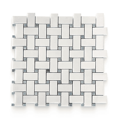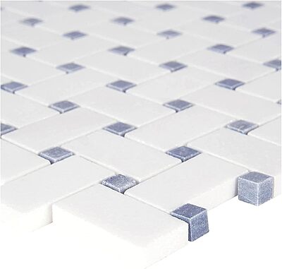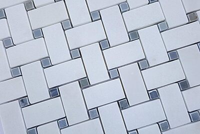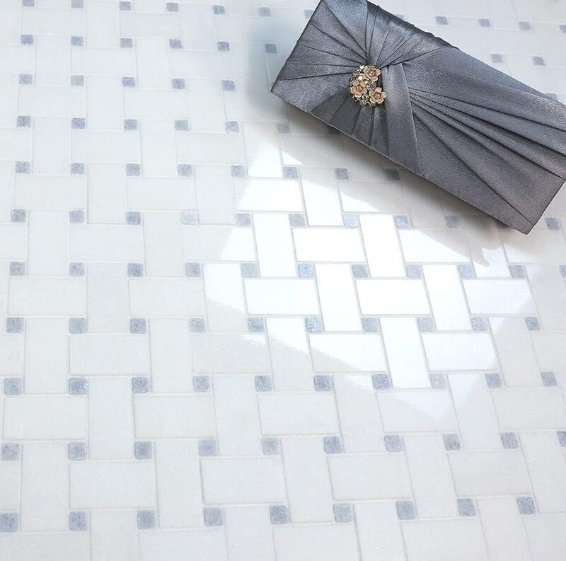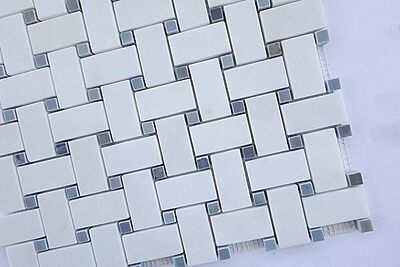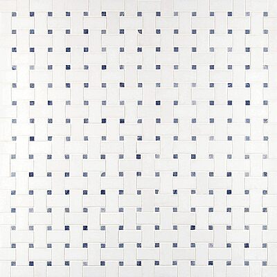 USA THASSOS WHITE BASKETWEAVE MOSAIC BLUE DOT 1X2 POLISHED