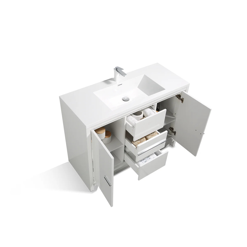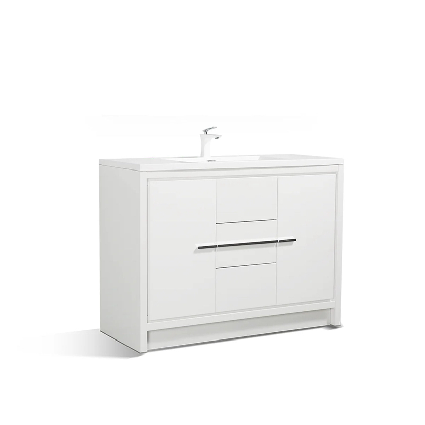 Allier Standing Vanity & Acrylic Basin Sink (Glossy White)48" V90194807
