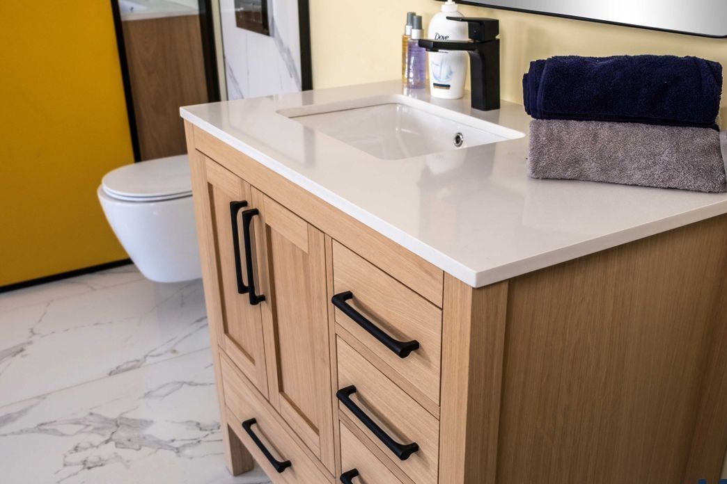 Ashley 36" Natural Oak Base Vanity Quartz top