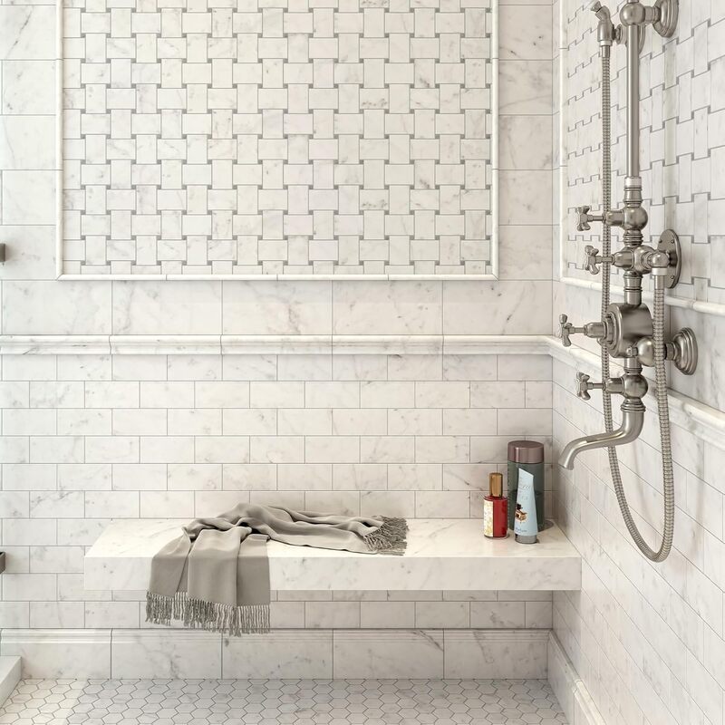 USA WHITE CARRARA CROWN MOLDING 2X12 HONED