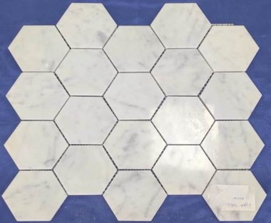 CARRARA MARBLE 3" HEX POL MOSAIC LAG